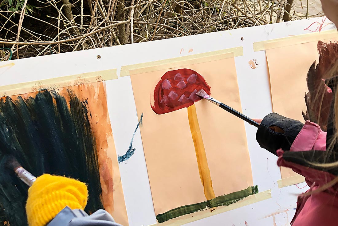 3. I projektet erbjöds även olika estetiska uttrycksformer. Barnen har använt sig av svampodlingen som inspiration och arbetat med kolkritor, vattenfärg, lera, gips och färgkritor. Fantasi möter fakta.