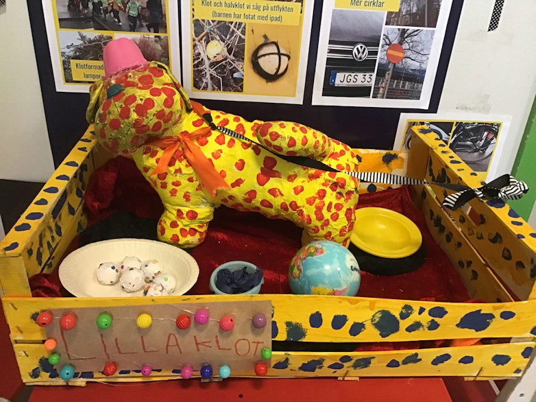 Barnens egen hundskulptur målades prickig och döptes gemensamt i samlingen till Lilla Klot. För att hunden skulle känna sig hemma behövdes en hundkorg. Skapandet tog ny fart och barnen gjorde korgen av en bananlåda som de målade cirklar på, de gjorde namnskylt, koppel, leksaker och en matskål med klotrunda köttbullar. Lilla Klot har även inspirerat barnen att skriva egna berättelser och jobba med digitalt skapande i green screen.