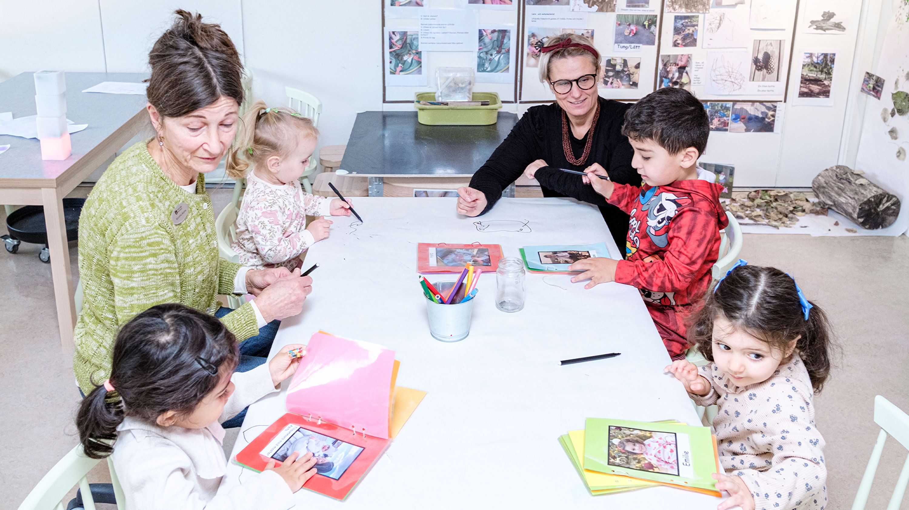 – Det sista barnen gör innan de slutar här och börjar i förskoleklass är att de producerar sina egna böcker. De är så stolta när de visar dem för sina kompisar, säger Dina Shabo, lärare i förskolan på Rubinens 3–5-årsavdelning.