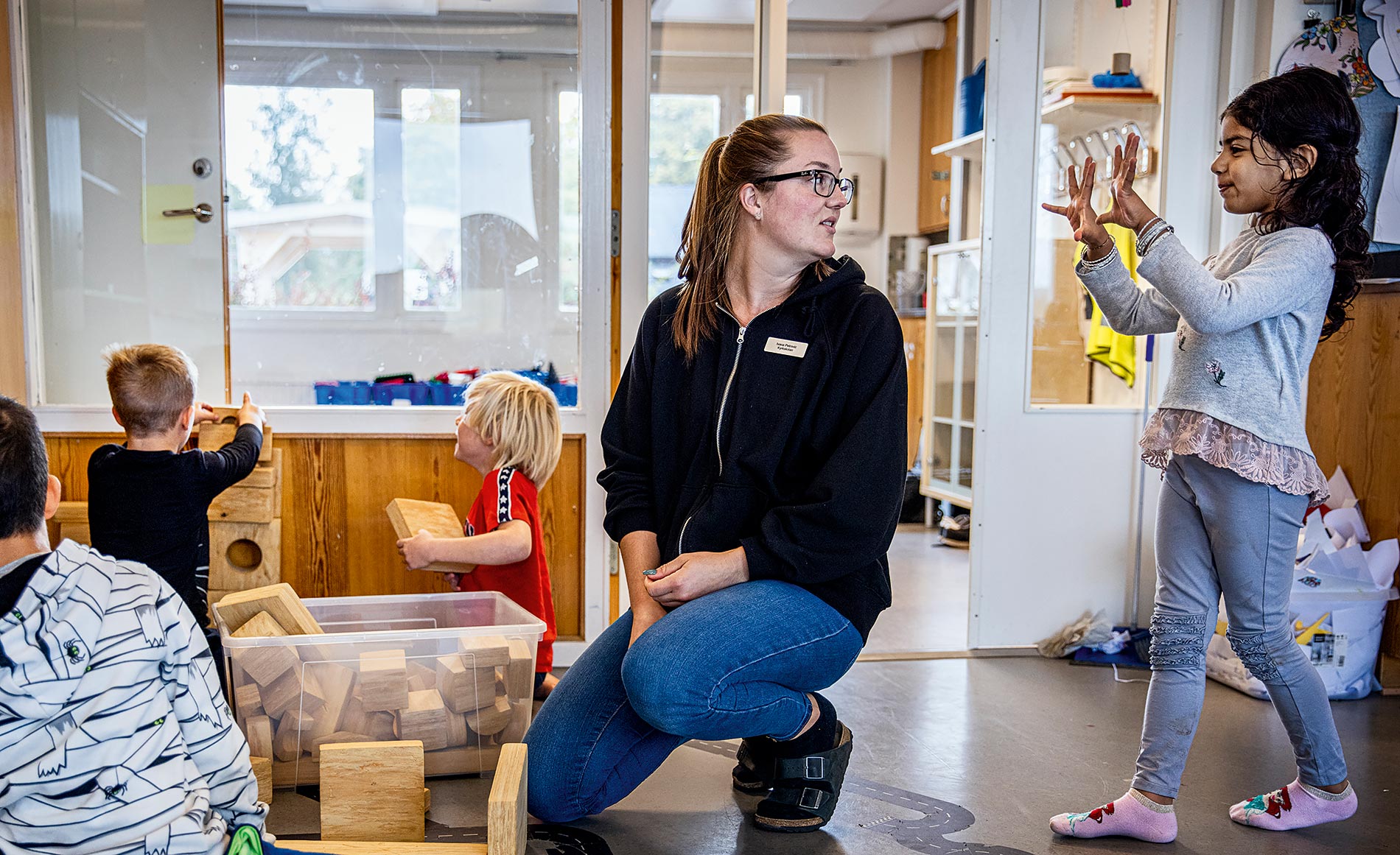 – Förr var det en lärare och ibland en resurs i förskoleklass. Numera är det två likvärdiga lärare som kan reflektera och utveckla förmågan att undervisa och se till omsorgen, säger Maria Bengtsson Hurtig.