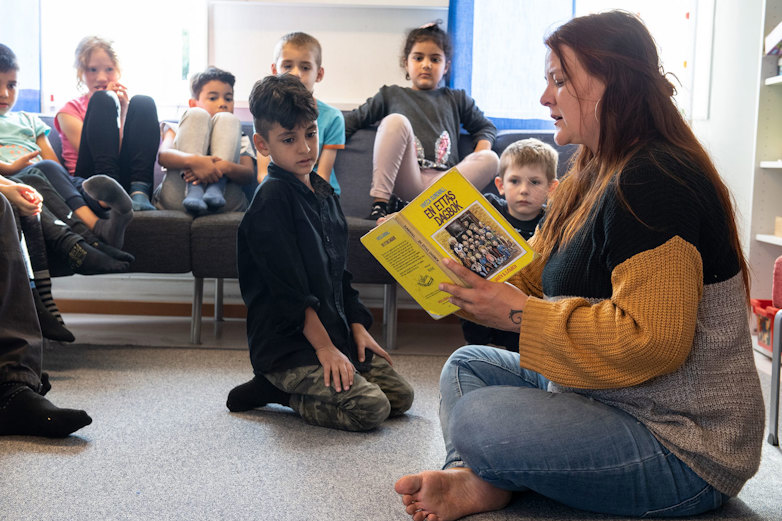 Cirka 15 elever i årskurs ett samlas runt Camilla Smedberg efter skoldagens slut. Hon läser högt ur Viveca Sundvalls ”En ettas dagbok”. Ibland stannar hon upp och frågar vad eleverna tror att personen i boken tänker och vad de tror ska hända sedan. Lässtunden pågår i 20 minuter varje dag före mellanmålet på Hammarnskolans fritidshem, där Camilla Smedberg är lärare i fritidshem.