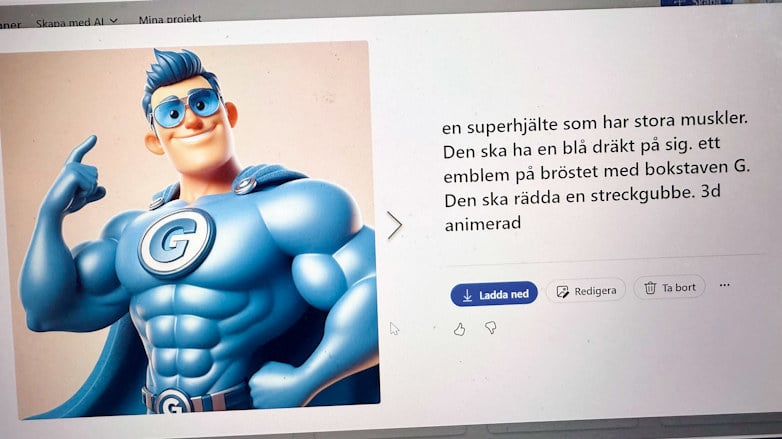 1. ”Som ett led i vår kommuns språkarbete valde vi på Nyvångs fritidshem att arbeta med AI och kreativt skapande. Våra elever, som går i årskurs två, fick börja med att på papper skriva ned och beskriva hur deras karaktär skulle se ut. Sedan satte vi oss tillsammans med varje elev och skrev in informationen i AI-programmet Microsoft Designer. Var eleven inte nöjd fick de modifiera och ändra i sin text så att bilden blev som de tänkt sig.”