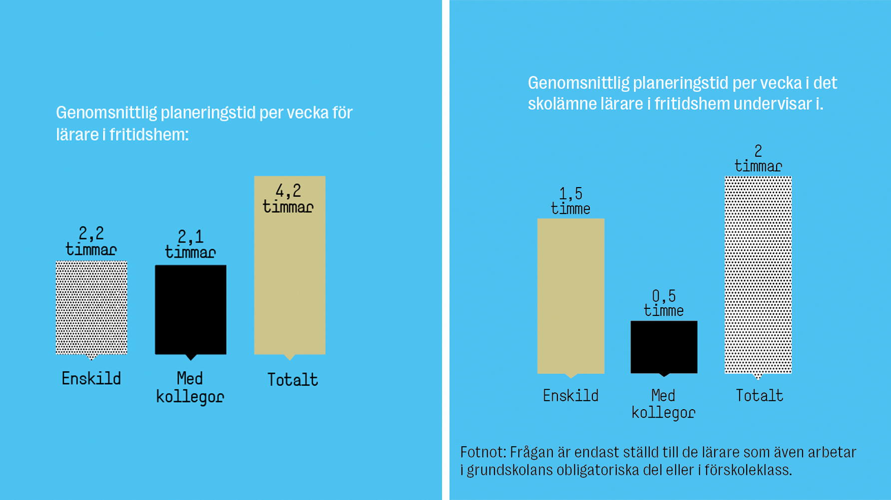 I en undersökning från Sveriges Lärare svarar 26 procent av lärarna i fritidshem att planeringstiden i ”mycket låg utsträckning” räcker till och 44 procent att den i