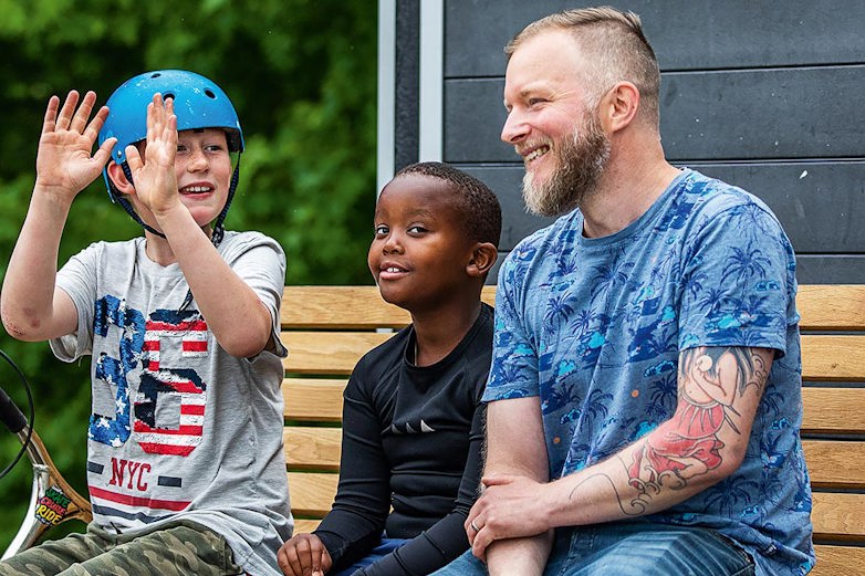 Hadar Nordin sitter omgiven av pysslande, ritande, legobyggande, spelspelande barn på ”sitt” fritidshem. Nu visar han Saga hur hon ska forma ett papper till en så kallad nafsdrake samtidigt som han småpratar med de andra tjejerna vid bordet och några pojkar i soffan bakom dem. Alla har just skyndat in från skejtparken intill fritidshemmet, eftersom det började regna.