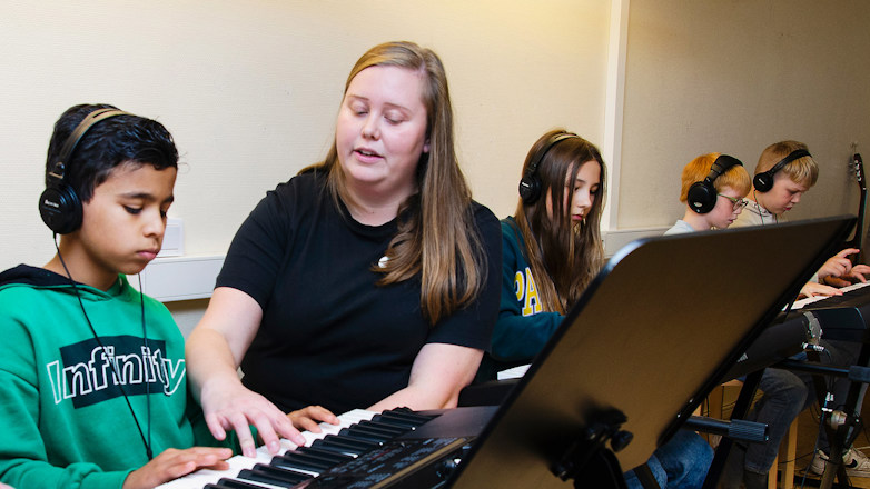 Tolv elever i årskurs fyra på Valhallaskolan i Oskarshamn sätter sig bakom klaviaturerna i musikklassrummet. Lisa Gustafsson har bestämt sig för att sätta lite press på dem den här lektionen. De har övat på piano hela terminen. Nu ska de försöka spela en låt tillsammans, efter att bara ha övat i tio minuter. Låten, ”In the djungle”, känner de till väl. Lisa Gustafsson har haft gruppen i musik sedan lågstadiet och de har sjungit den många gånger tillsammans. Hon har skrivit ackorden på tavlan och sätter sig med gitarren och spelar med, för att göra rytmen tydlig. Skolans biträdande rektor Roger Nilsson, som närvarar för att han ska vara med på den här intervjun, sätter sig bredvid henne och ansluter till ”bandet” på bas.