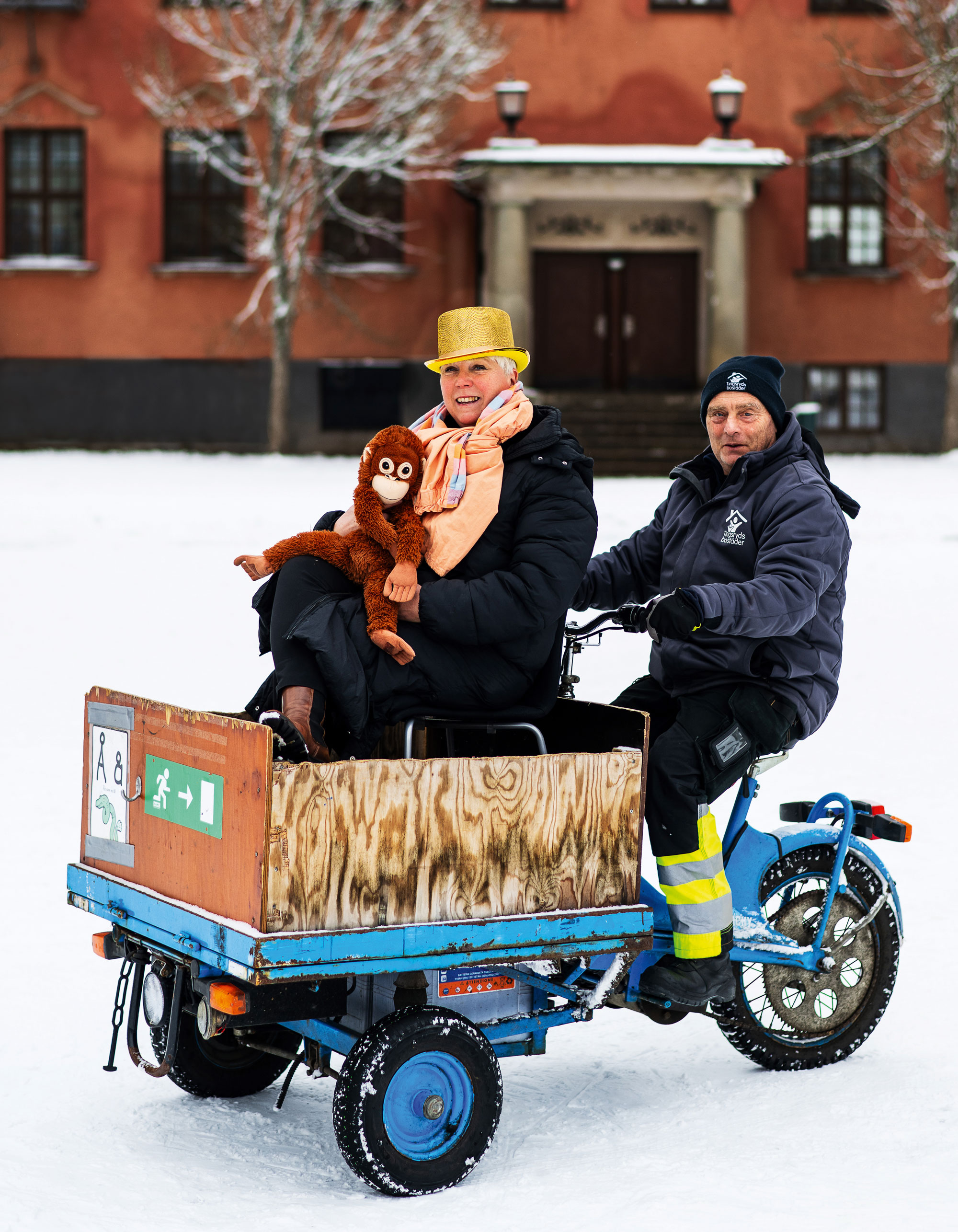 Fritidspedagogiks fotograf har inga problem att få henne att ta på sig utklädningskläderna. Eller be vaktmästare Håkan Andersson att köra henne på flakmoppen. Det är sådant hon gör från och till.