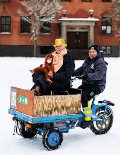 Johanna Nordin gillar att skoja med eleverna, till exempel på vaktmästaren Håkan Anderssons flak.