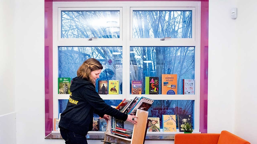 Fritidspedagogerna tar hjälp av Monika Staub Halling när de väljer böcker. Oftast är det korta, lättlästa böcker med ett enkelt språk. Hittills bara skönlitteratur men i vår ska de börja med faktaböcker också.