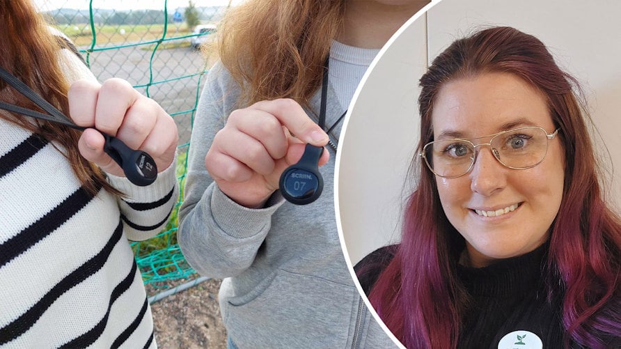 Frida Sjöberg är rektor på Järbo friskola i Dalsland där alla elever och lärare numera har en rörelsemätare runt halsen.
