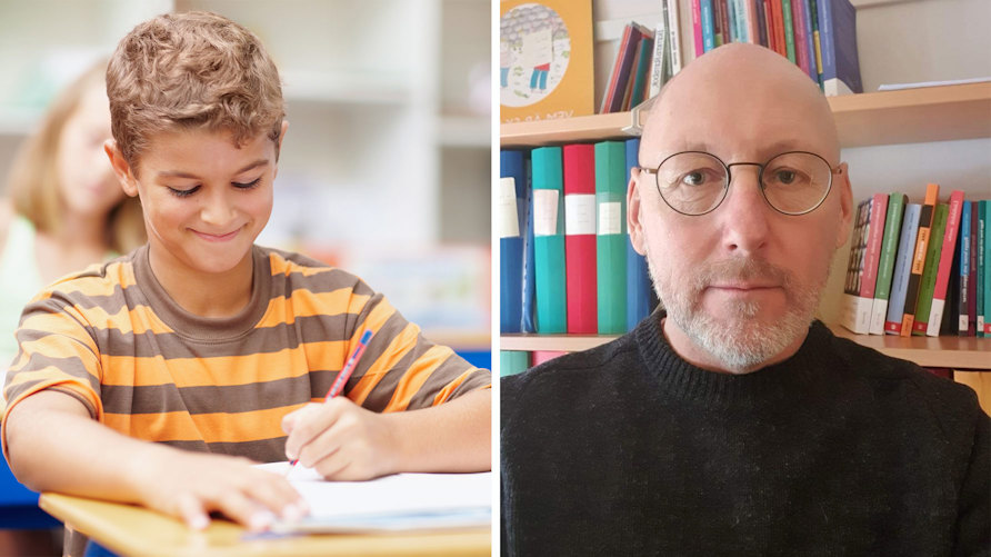 Magnus Jansson, forskare vid Linköpings universitet, har i sin avhandling undersökt elevernas upplevelser av skrivande i mellanstadiet. Foto: Adobe stock och privat