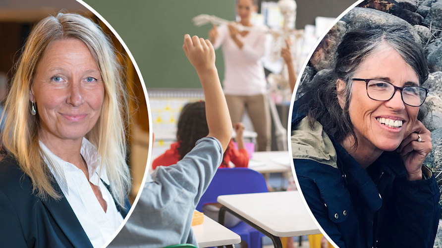 Ingrid Pihl på Sveriges Lärare, till vänster, och F–3-läraren Maria Garpebo, till höger, är kritiska mot att beskedet om tioårig grundskola dröjer.