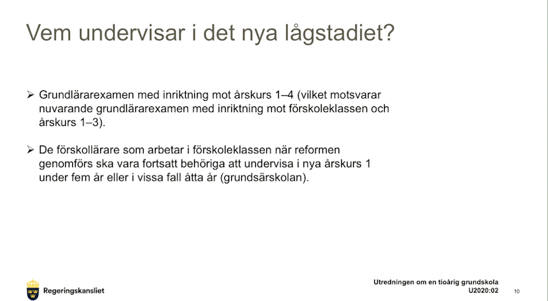Nya beskedet: F-klasslärare ska fortbildas när grundskolan blir tioårig