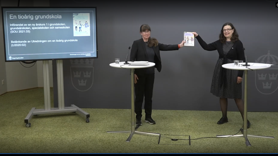 Idag lämnade hon över sin utredning till utbildningsminister Anna Ekström (S) om hur tioårig grundskola kan införas genom att förskoleklassen görs om till nya årskurs ett. Syftet är att förbättra kunskapsresultaten genom att eleverna redan från sex års ålder ges mer undervisning utifrån grundskolans kursplaner.