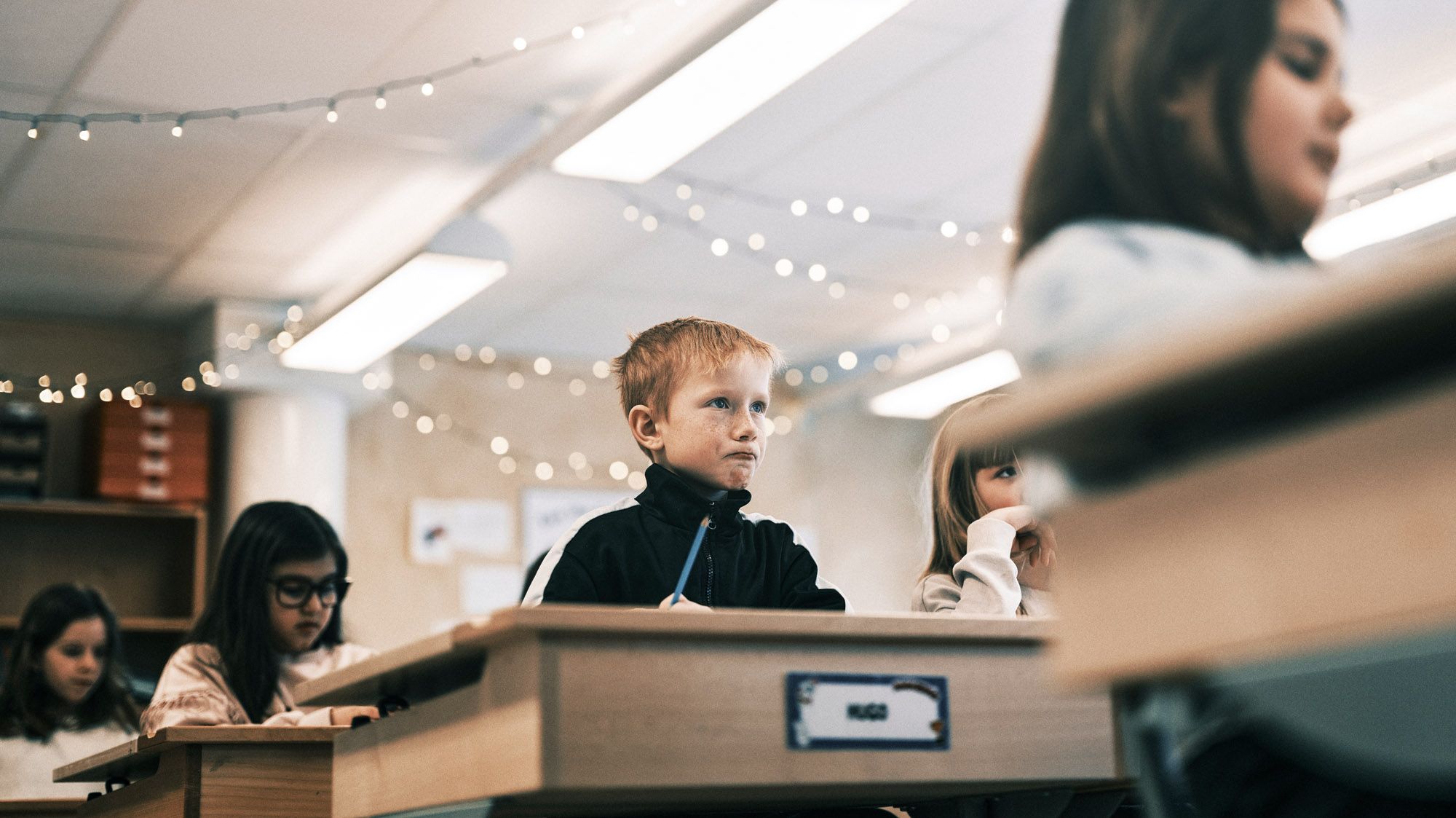 När de återvänt till bänkarna uppmanar Louise Halvander dem att bara njuta av framsidan. Det ska dröja till slutet av lektionen innan de får dyka ner mellan pärmarna och räkna på egen hand.