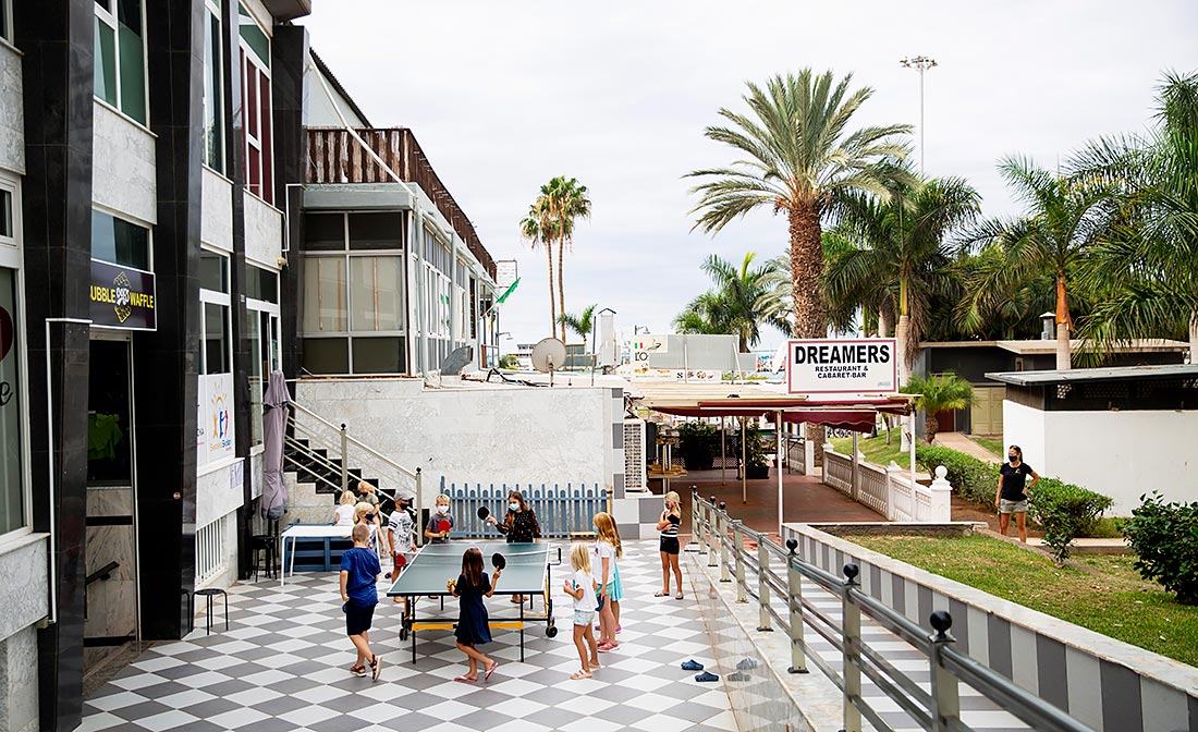 I vattenbrynet på en strand på Teneriffa står ett tiotal lågstadieelever i en cirkel och leker en matematiklek. Deras fötter sköljs då och då av vågorna. Ansiktena täcks till hälften av munskydd i olika färger och material. Eleverna i Svenska skolans åldersblandade lågstadieklass är vana vid annorlunda former av undervisning. Inte bara på grund av det varmare klimatet på den spanska ön utanför Afrikas västkust, utan också för att det är en skola med endast ett 50-tal elever från förskola till gymnasium.