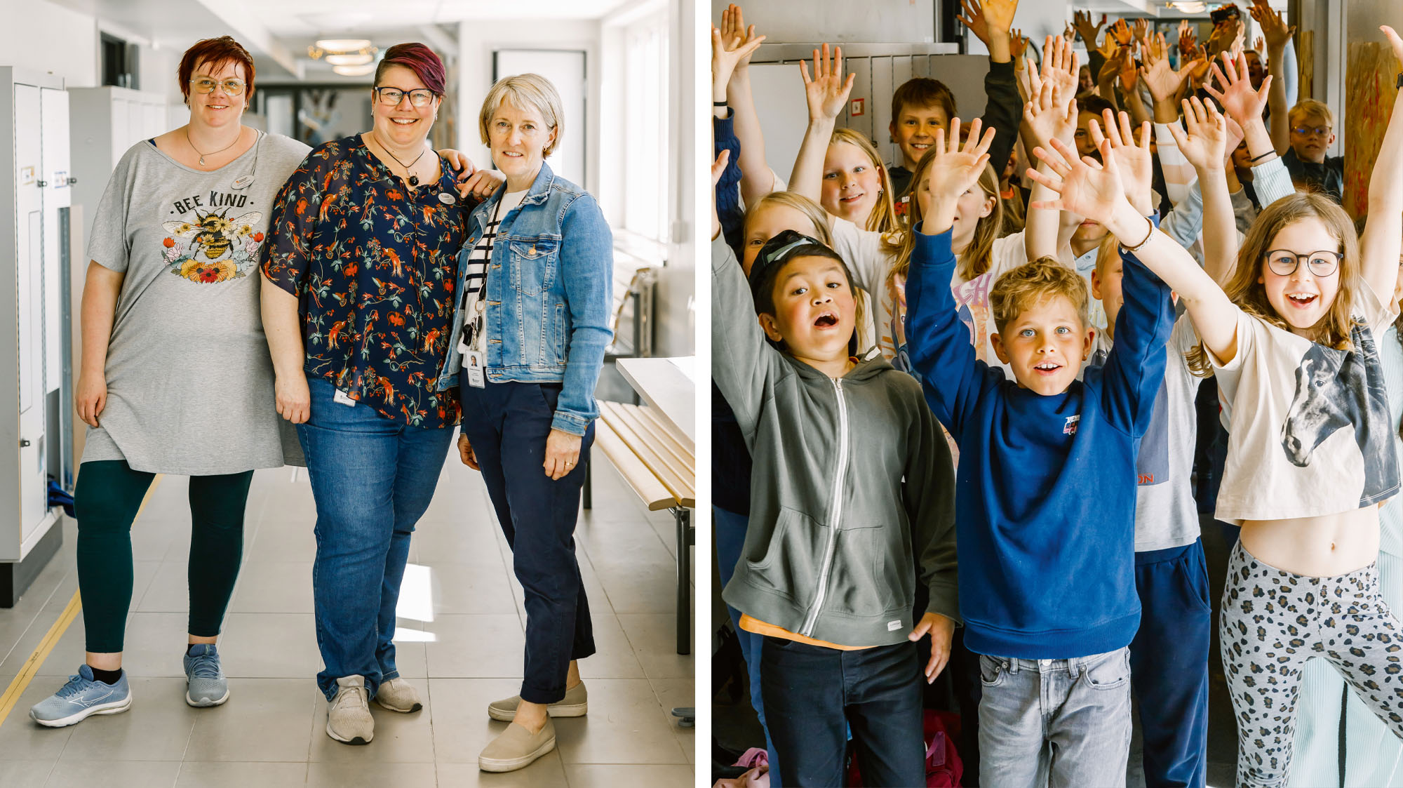 Sanna Kjellqvist, Anna Asplund och Kicki Nordlander – samt storklassen i ”sin” korridor.