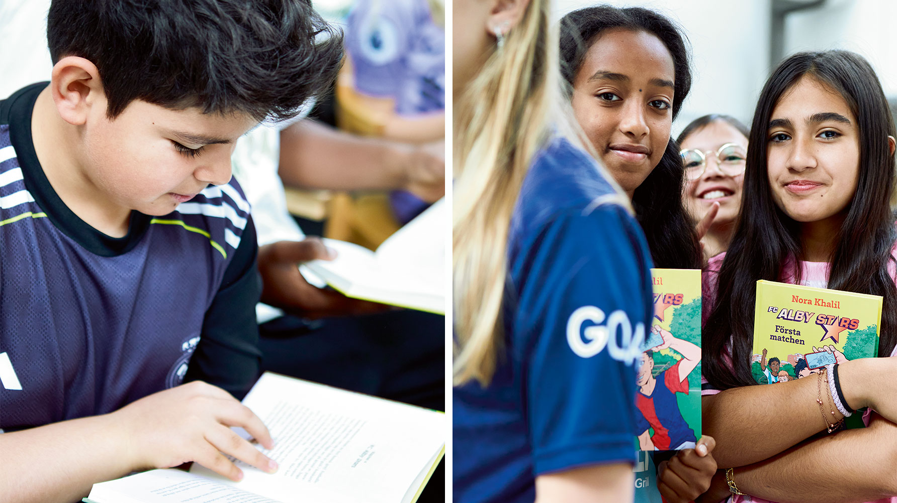 Hela mellanstadiet fick träffa Nora Khalil, författaren bakom FC Alby Stars. Självklart hade många elever fotbollströjor på sig, bland annat Noah Okele.