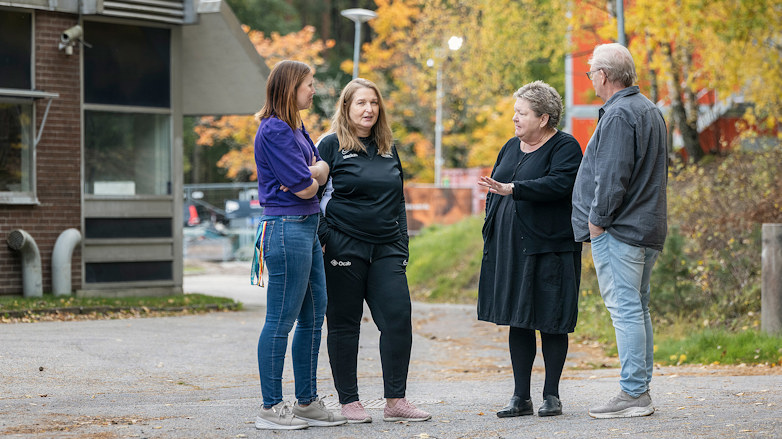 Mordet utanför skolan påverkar fortfarande Gunilla Skogsmo och hennes kollegor Veronica Sivén Stenström, Beata-Jasmin Hussain och Jan Strömberg. Foto Emelie Otterbeck/Bildbyrån