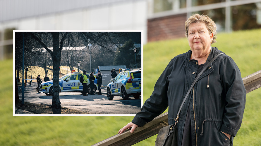 I april sköts en elev till döds utanför en skola och förskola i Eskilstuna. Gunilla Skogsmo, ämneslärare på Rekarnegymnasiet och ordförande för Sveriges Lärare i Eskilstuna, befann sig på skolan när mordet skedde. Foto: Emelie Otterbeck/Bildbyrån