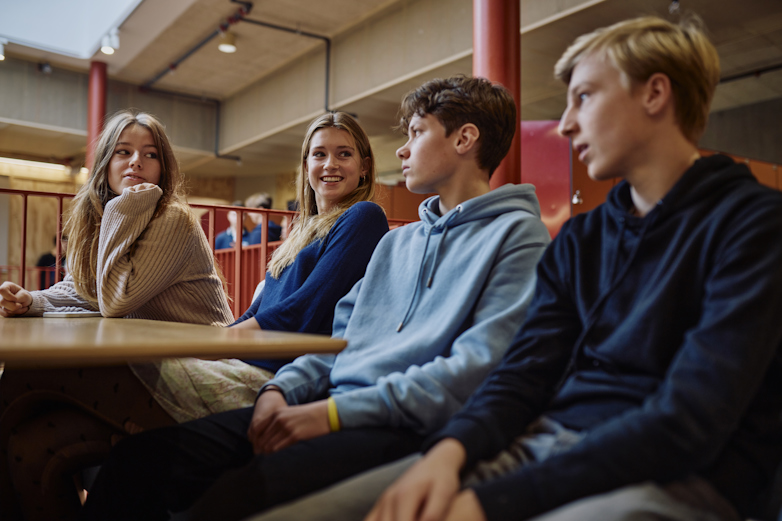 Niondeklassarna Kim Normark, Freja Hiller, Albin Bindzau och Liam Dovander har en hel skolgång bakom sig med paddor och datorer. ”Men vi har fått skriva för hand också och det är bra.” Foto: Oskar Omne