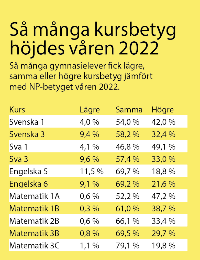 4 av 10 kursbetyg i svenska är högre än NP-betygen