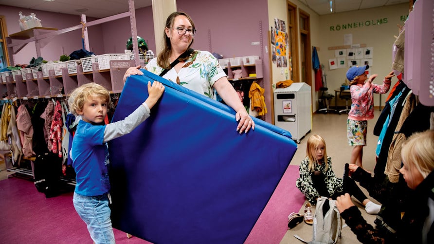 – Vi önskade enfärgade golv för att undvika att utsätta barnen för visuellt buller, men vi fick ingen respons. Vi köpte sedan stora samlingsmattor och la över. En annan sak gällde torkrum, vilket ju är bättre än torkskåp miljömässigt. Men jag hade egen erfarenhet av att torkrum är svåra att få att fungera. De svarade att det inte skulle bli några problem, men det tog två år innan vi fick dem att fungera optimalt. Jag önskar att vi hade fått tycka till mer, och att de hade lyssnat, säger hon.