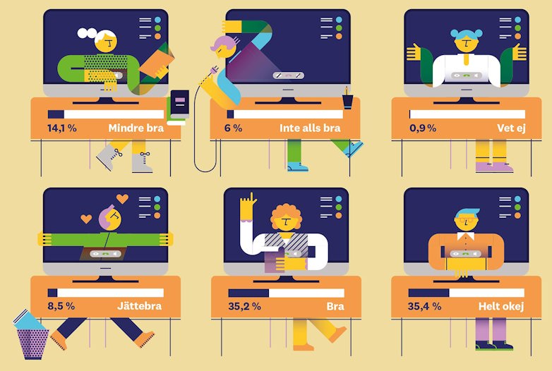 Eleverna är hyggligt positiva. Enligt en enkätundersökning som Sveriges Elevkårer genomförde bland gymnasieelever i april svarade nästan 80 procent av dem att distansundervisningen hade fungerat allt från okej till jättebra.