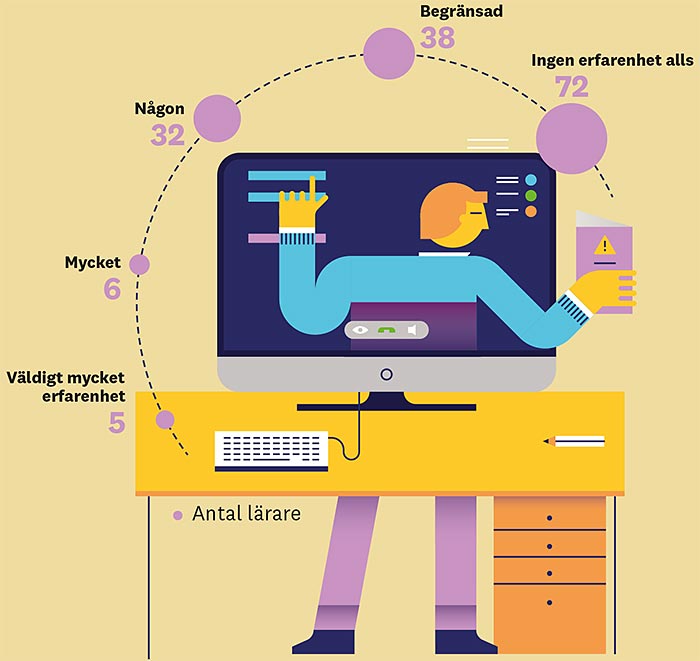 Stockholms universitet har i undersökningen ”Covid-19 och omställning till distansundervisning i svensk skola” intervjuat 153 lärare om deras erfarenhet av distansundervisning. 110 av dem hade antingen ingen eller begränsad tidigare erfarenhet medan 11 hade stor vana av digital undervisning. Däremot menade en stor majoritet av de svarande att de både hade god tillgång till digitala läromedel och vana att använda dessa i sin vanliga undervisning.