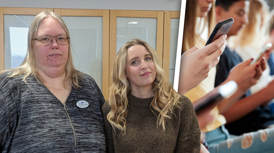 Lärarna Anna-Maria Olsson och Viktoria Modd ser fördelarna med att skolan införde mobilförbud. Foto: Privat och Adobe stock