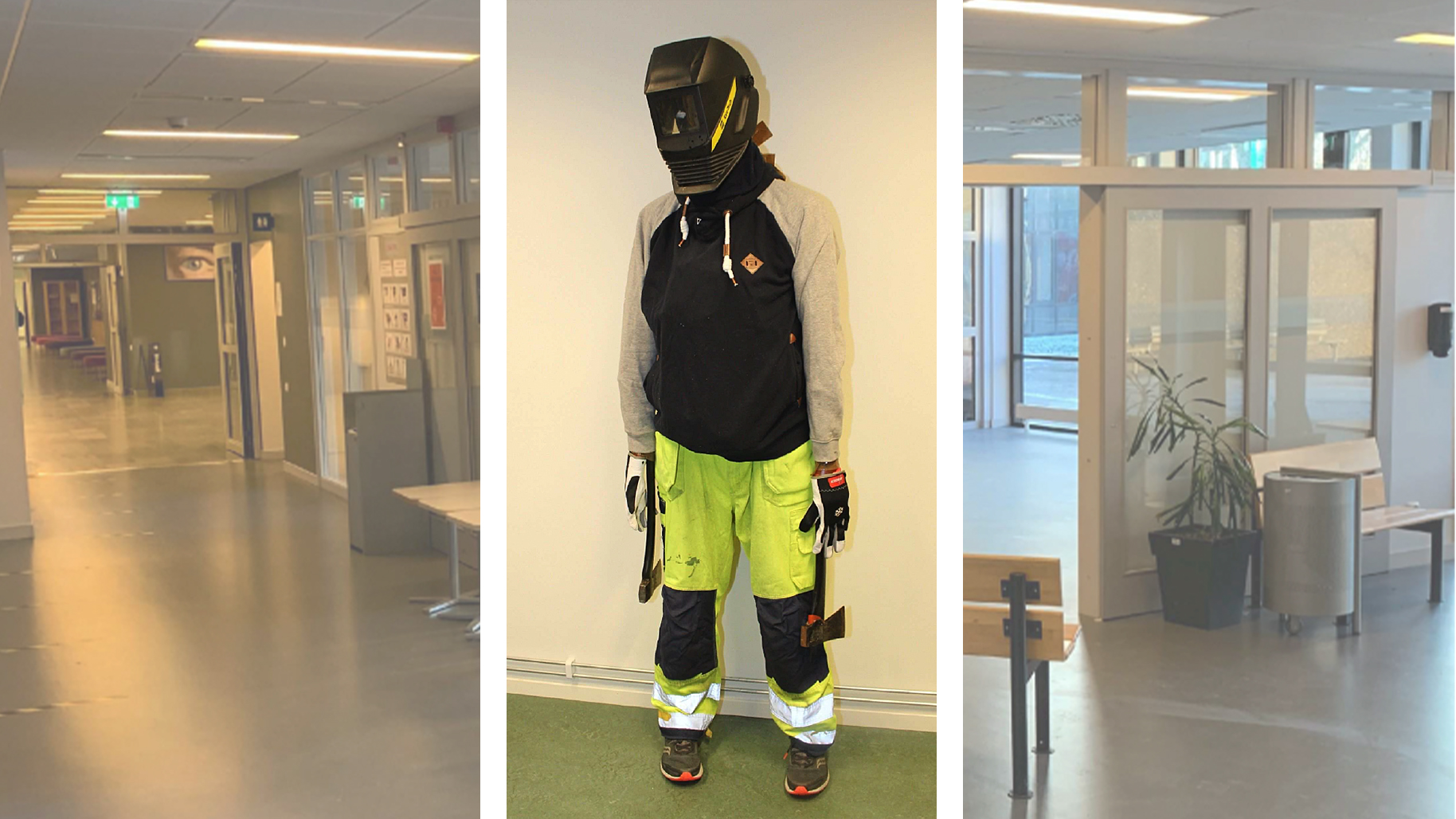 Han var klädd i arbetskläder och tog sig in i huvudbyggnaden på Peder Skrivares gymnasium, där han maskerade sig med en svetsarmask på en toalett och gick vidare in i skolans café där sökte upp 17-åringen och en annan elev och uppmanade dem att gå. När 17-åringen sträckte sig efter en vattenflaska gjorde 25-åringen utfall med en yxa och skadade honom i handen.