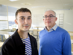 Nabi Allahyarov och Fredrik Andersson är SO-lärare på Färsingaskolan i Sjöbo – med olika lång tids erfarenhet. Foto: Kennet Rouna