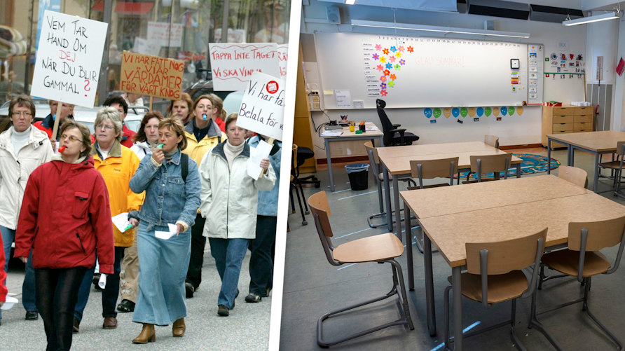 Kommunals strejkvarsel påverkar indirekt lärare som uppmanas att inte utföra uppgifter som normalt sköts av Kommunals medlemmar. Bilden från Kommunals demonstration 2003. Foto: Bildbyrån