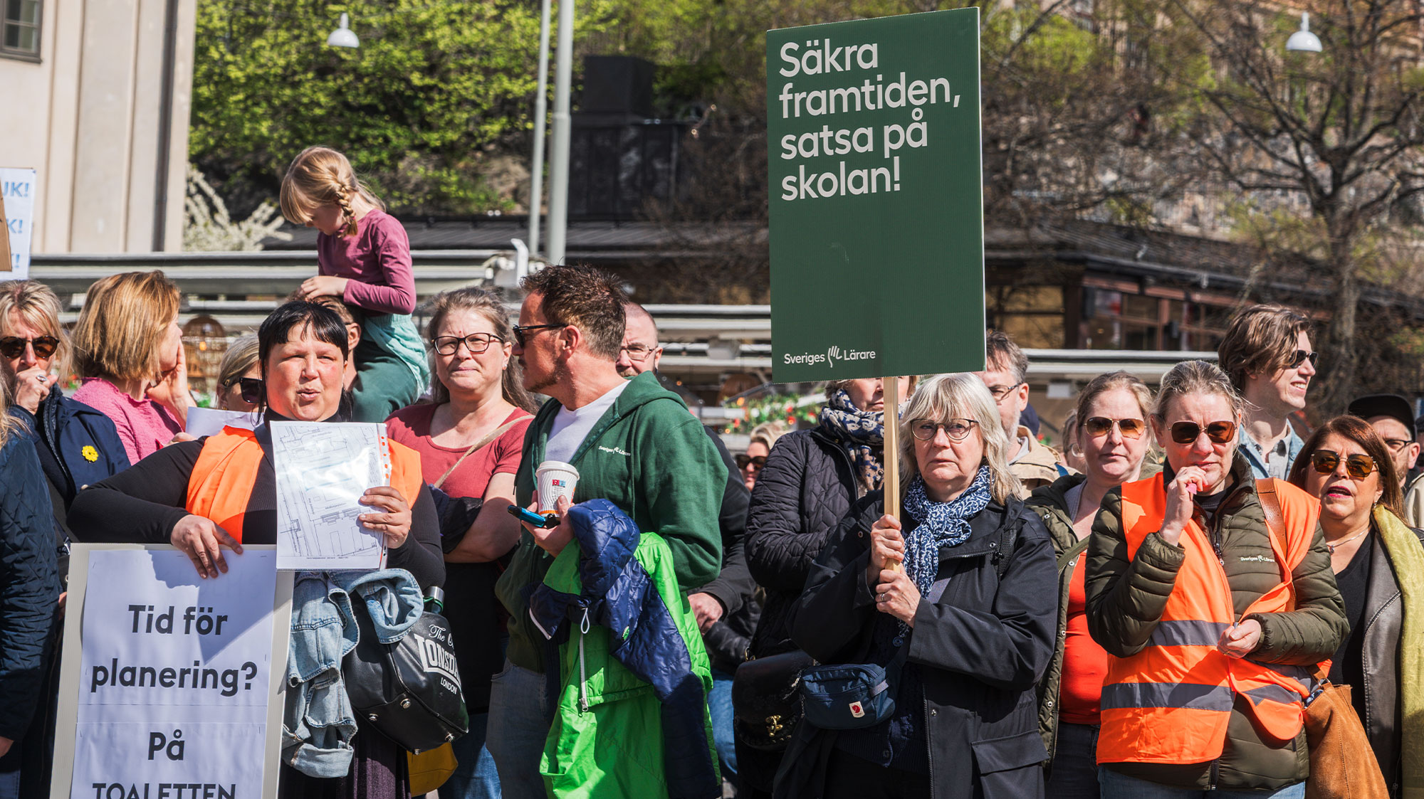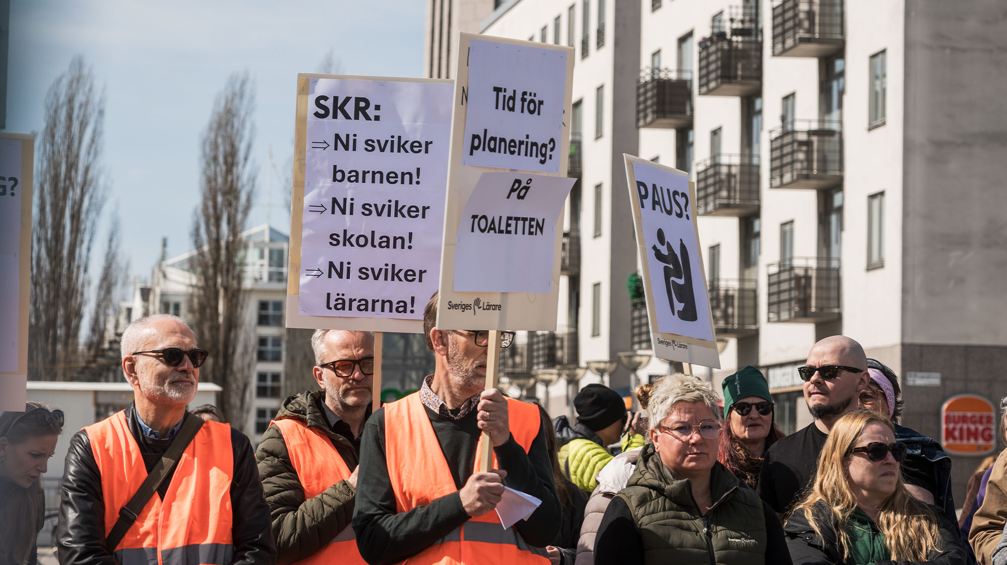 ”Vad vill vi ha? Tid för planering. När vill vi ha det? Nu, nu, nu” ropar lärarna över Medborgarplatsen.