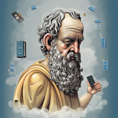 AI-boten Midjourney:s illustration av en grekisk filosof som molntjänst.