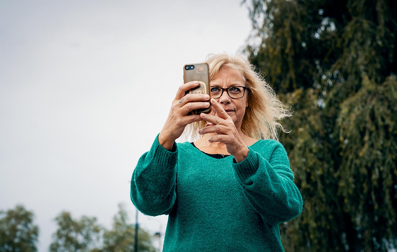 – Är jag med i radio vill jag helst vara hemma när det sänds. Är jag bortrest försöker jag ta en fika med någon vän, som sedan kan få kolla mejlen åt mig, säger hon.