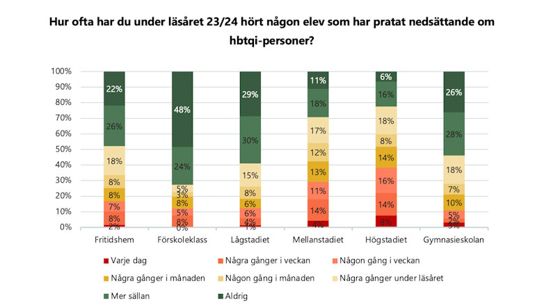 Var tredje lärare i mellanstadiet och 40 procent av lärarna på högstadiet hör varje vecka nedsättande kommentarer om hbtqi-personer.