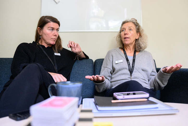 Lärarna Johanna Sundfeldt och Paula Brusk Jahn jobbar på akutskolan elevator. Foto: Carl Sandin/Bildbyrån