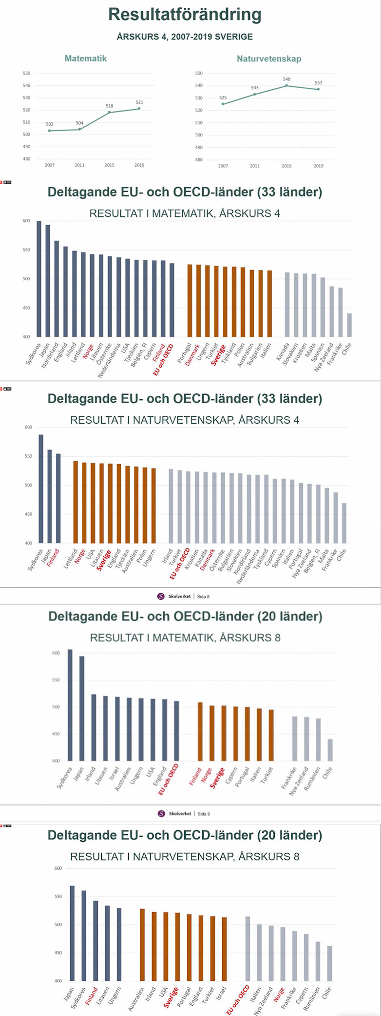 När IEA-chefen säger att det finns anledning att vara nöjd syftar han på det positiva trendbrott åttondeklassarna gjorde i både matematik och naturvetenskap 2015. De svenska fjärdeklassarna har inte varit med lika länge, men för dem har resultaten bit för bit förbättrats.