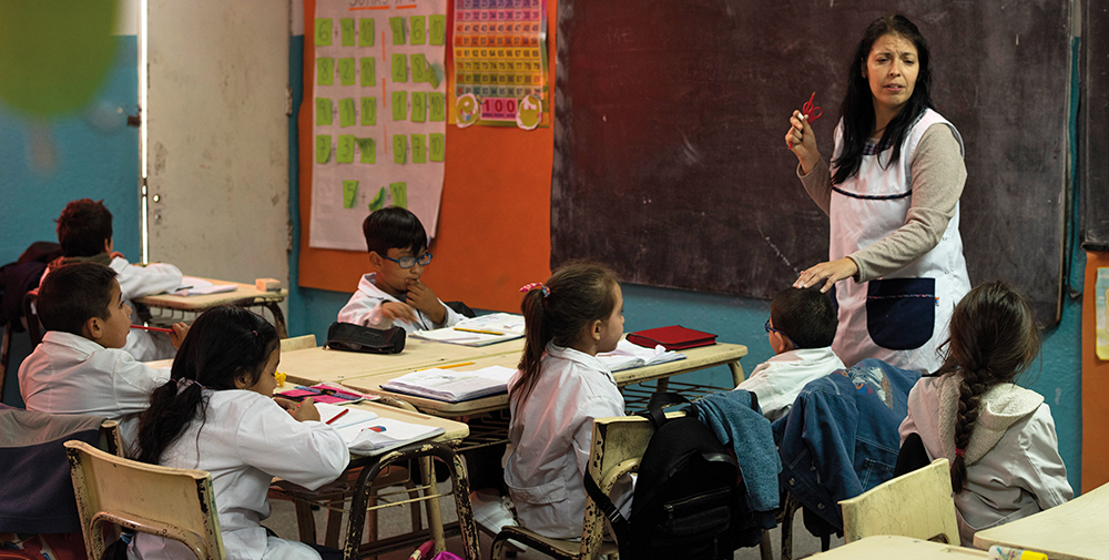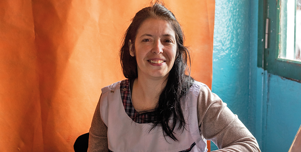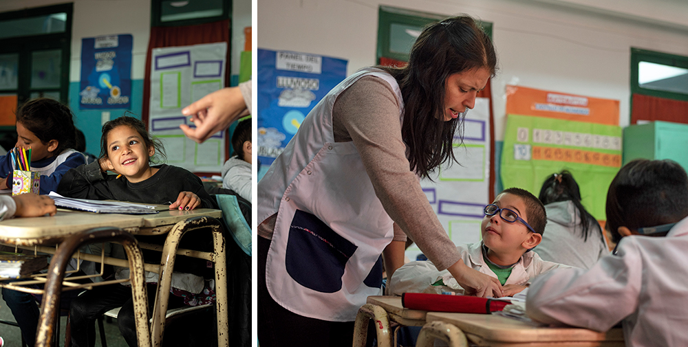 Liksom många lärare i Argentina delar Jimena sin tid mellan två skolor. Hon börjar varje dag här mellan klockan 8 och 12 och strax ska hon ge sig av till nästa skola där hon jobbar mellan 13 och 17. Det blir långa dagar med för- och efterarbetet och därtill en timmes resväg, enkel väg.