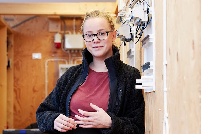 Yrkesläraren Amanda Swedsudde griper in om någon använder kränkande ord. Och hon föreläser om machokultur i byggbranschen. Foto: Christopher Hunt