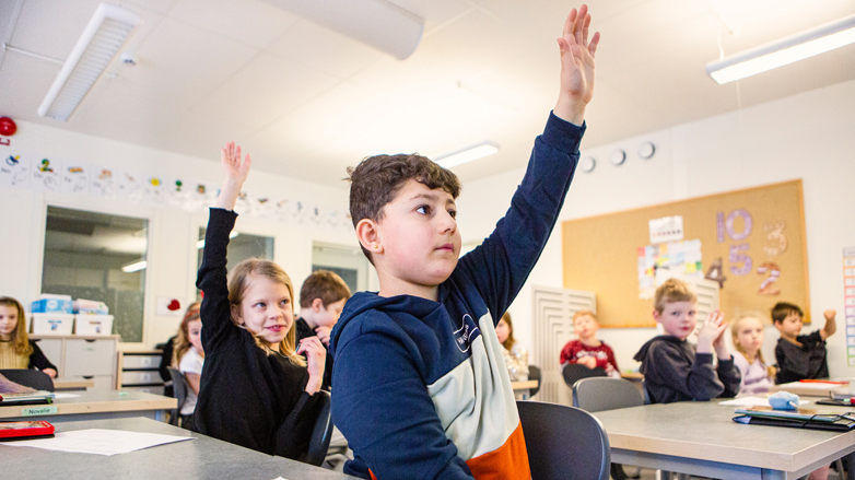 Halva klassen räcker upp handen. ”Det är mindre i en, och mer i en”, säger en. ”Den ena är mörkare”, säger en annan. Maja Sundqvist leder diskussionen på rätt spår, just nu är det inte färgen – utan mängden – som de ska fokusera på.