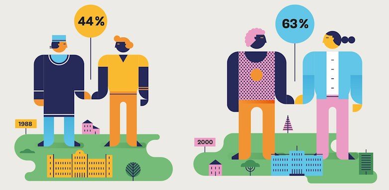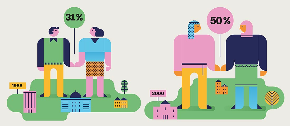 Av de elever med utländsk bakgrund som gick i den svenska skolan 1988 hade 44 procent av dem 15 år senare en partner som även hen hade utländsk härkomst. Tolv år senare hade den siffran ökat till 63 procent.