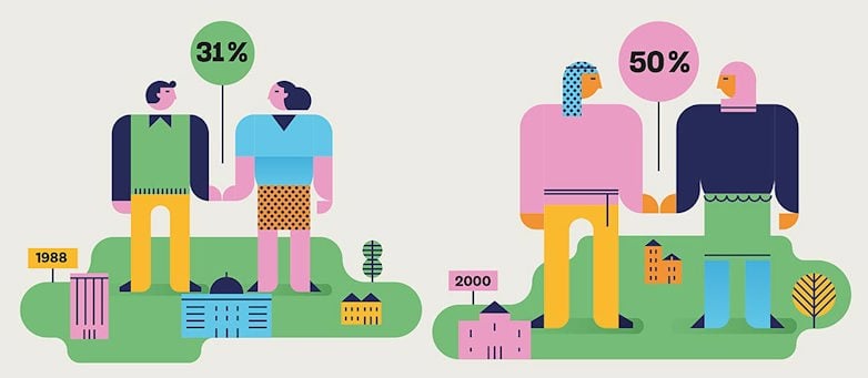 1988 hittade 31 procent av dem en kärleksvän från samma region vilket sedan hade ökat till 50 procent år 2000. Det betyder i praktiken att segregationen kontinuerligt ökade under den undersökta tiden.