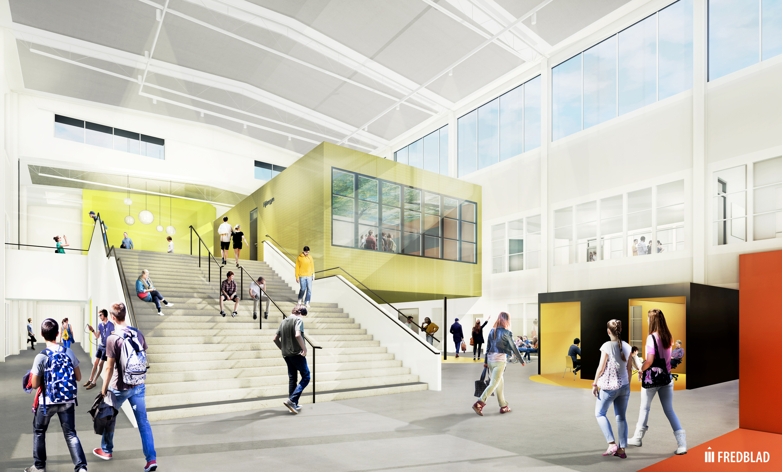 Arkitektbilden visar ritningarna på entrén på den nya skolan som ska stå klar 2020. Bild: Fredblad arkitekter