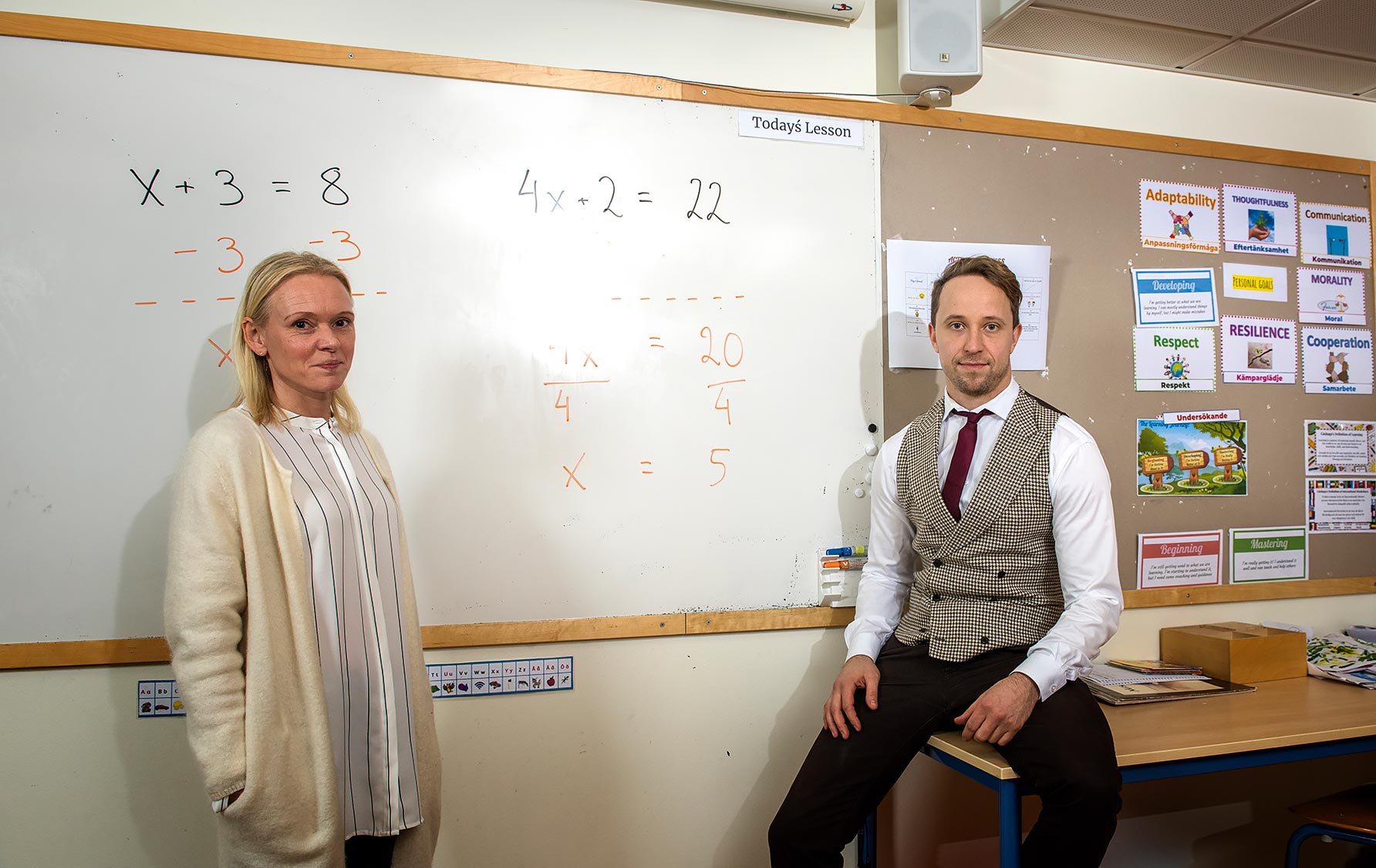 I fåtöljerna i lärarrummet sitter förutom Magdalena Andersson även matematikläraren Jimmy Leppänen. Båda två har svenska som undervisningsspråk, men den internationella inriktningen märks även för dem: