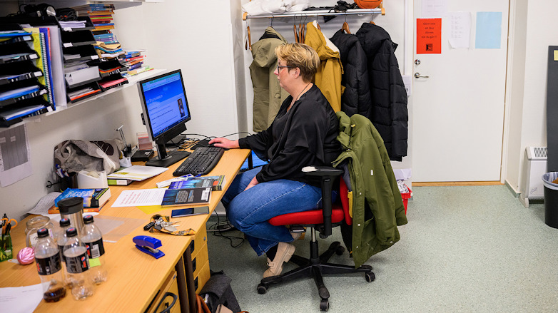 Sara Bruun i sitt arbetsrum på Linnéskolan i Hässleholm. Foto: Ludvig Thunman