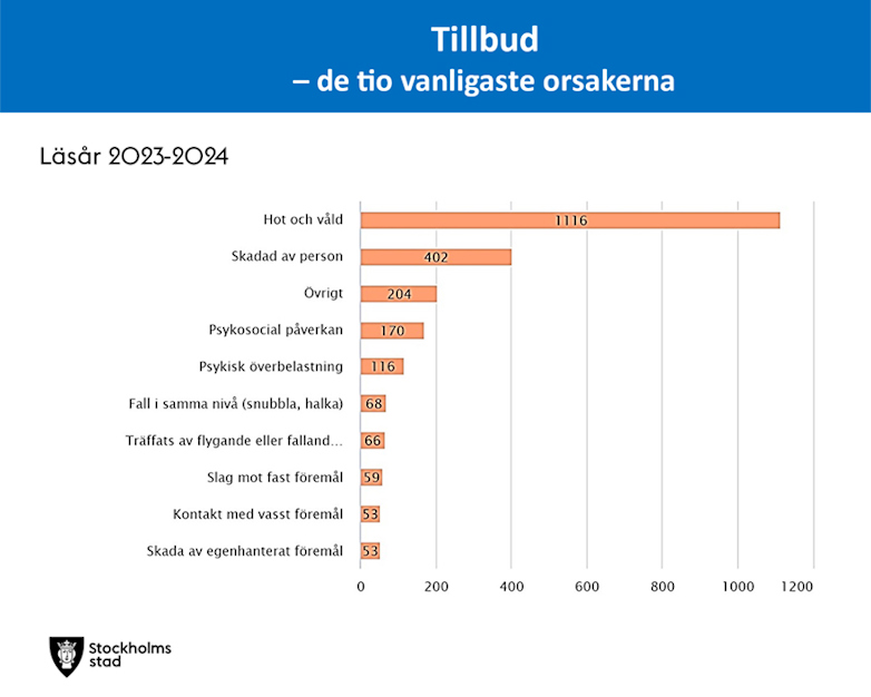 – Detsamma gäller IA-systemet. Där görs skillnad mellan olycksfall och tillbud. Våld, som man kan säga innebär ett ”aj”, ska alltid anmälas som olycksfall men bara en tredjedel rapporteras rätt i Stockholm.
