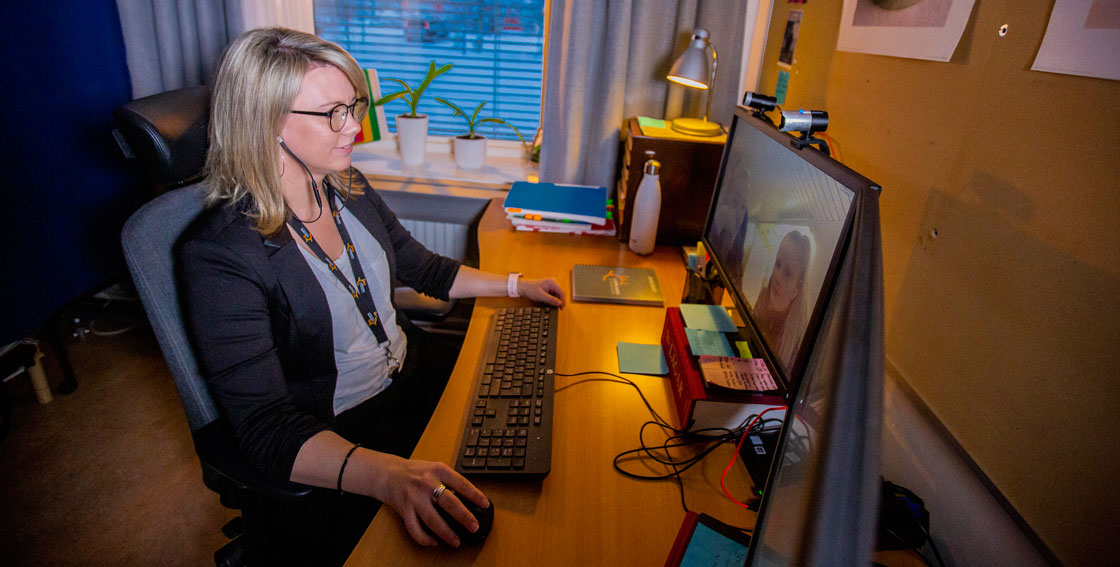 – På ett vanligt gymnasium skulle jag sitta med en grupp på 30. Man har behov av närhet när man jobbar på distans och därför ser man till att lära känna varandra ännu bättre. När de hör av sig passar man på att prata, säger hon.