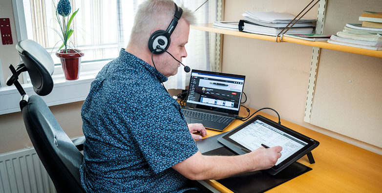 I arbetsrummet på övervåningen står teknikutrustningen noggrant uppställd och redo. En mikrofon, ett headset, en kamera och en ritplatta. I kväll ska det spelas in en ny genomgång i matematik.