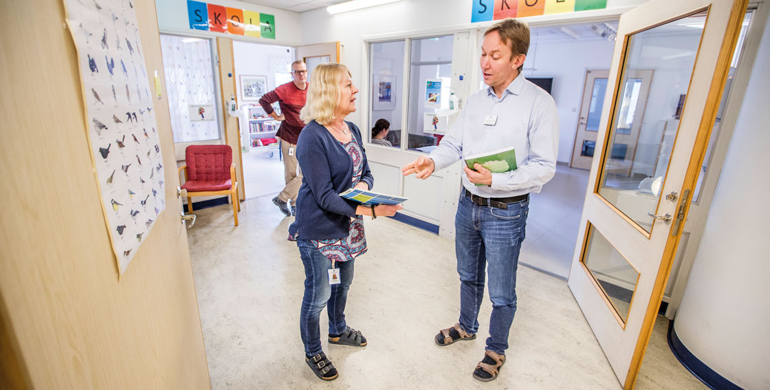 – Det blir aldrig som man tänkt sig. Vi jobbar efter elevernas dagsform och hjälper varandra. Jag hoppar in som engelsklärare för de lägre årskurserna om det behövs, och NO-läraren gör experiment tillsammans med dem så långt som lokalerna tillåter. Vi gör alla möjliga anpassningar, säger Anders Westerlund.